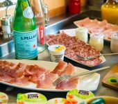 Nous mettons à disposition sur notre buffet de petit-déjéuner un choix de céréales, de fruits secs, de fruits frais entiers et coupés, d’une salade de fruits fraîche, de yaourts et de fromage blanc. Nous proposons aussi du riz au lait de la ferme, de multiples compotes, du miel et un choix de 12 parfums de confitures locales. Nous vous offrons aussi des œufs de la ferme ainsi qu’un cuiseur à œufs, un presse agrumes, de la rosette, du jambon blanc, de la tomme grise, du camembert ainsi que du fromage de chèvre de la ferme.